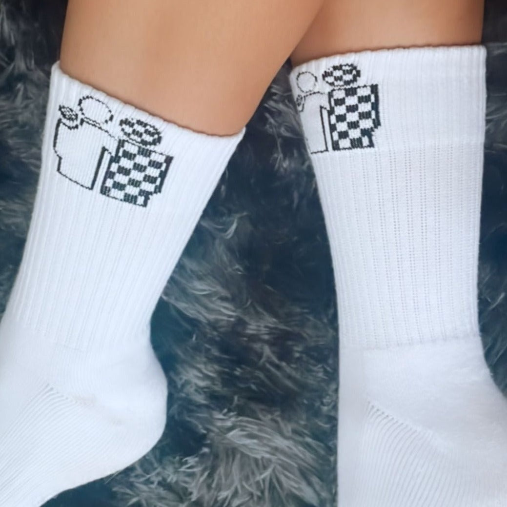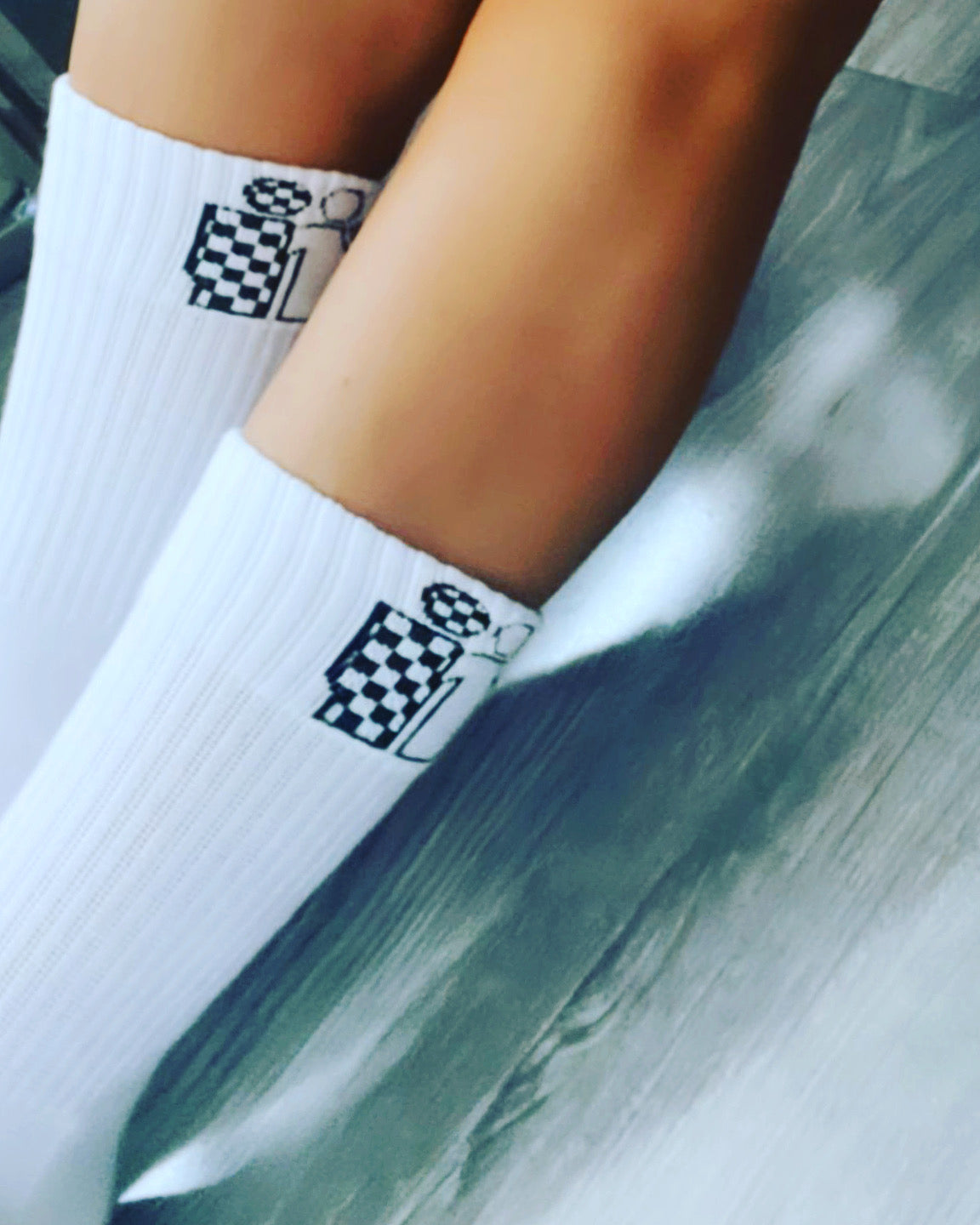 The latest sock release from Checkmate Socks is the all white edition. One size only.